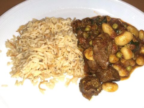 Wie ich zu dem Rezept kam? Ich hatte noch eine halbe Büchse grosse weisse Bohnen und Resten von Harissa-Paste. Also googeln und schon kam ich auf das libanesische Rezept: ein