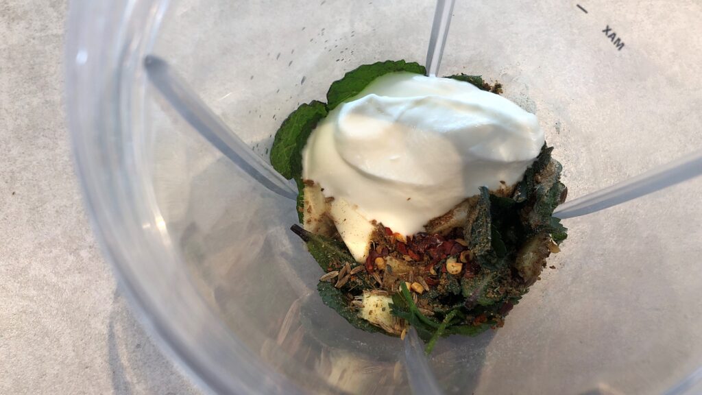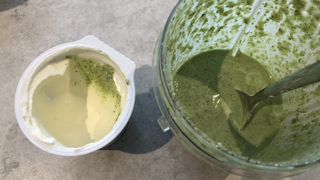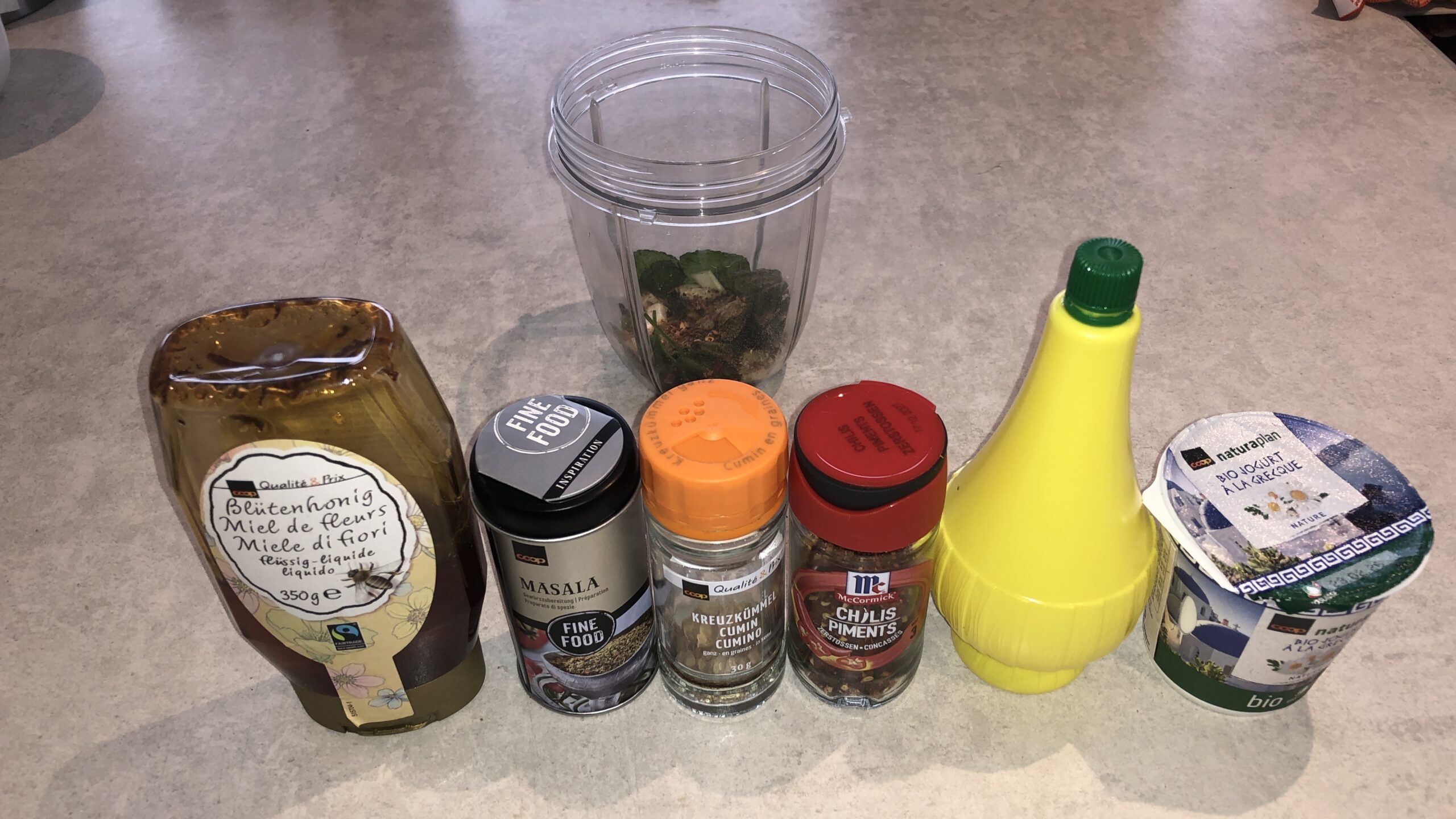 - Alles ausser dem Joghurt in einen kleinen Mixer geben